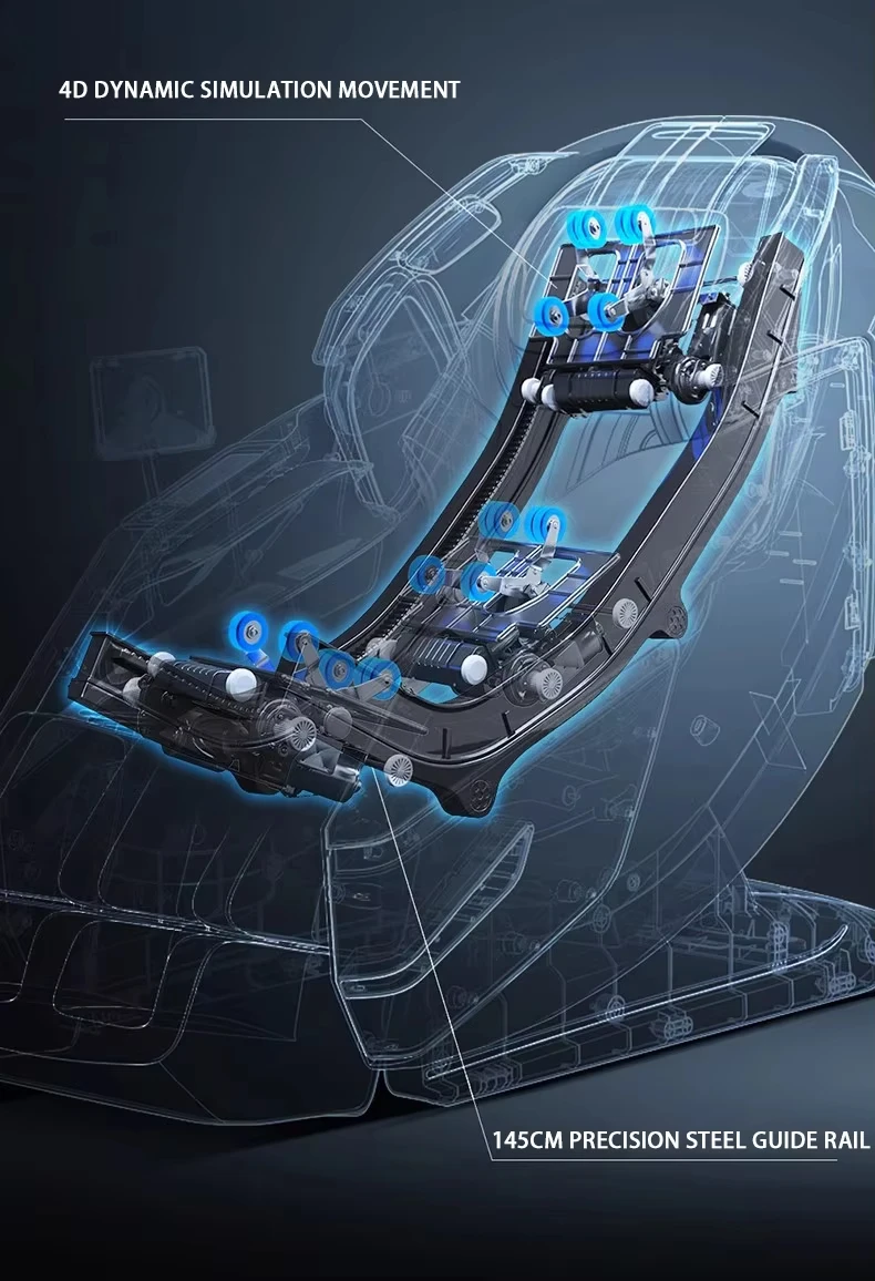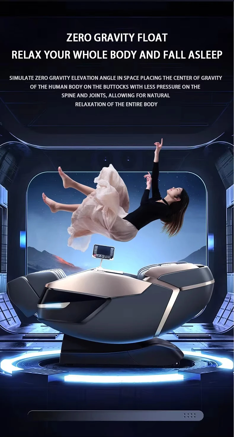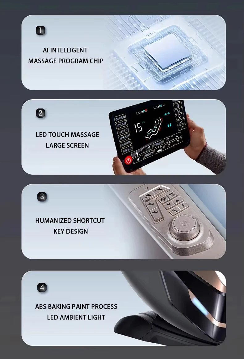The new 3D intelligent manipulator massage movement bluetooth music Al intelligent voice control Smart menu LCD touch screen Full body air bag massage Smart wireless charging for mobile phones High-end fashion shortcut keys Automatic health detection: heart rate, blood pressure, blood oxygen Foot 3D Roller Massage Double push rods, independent lifting of the calf One key forward, zero gravity function Back + calf heating function