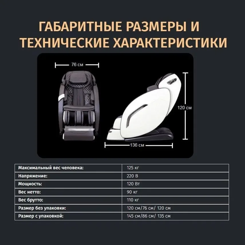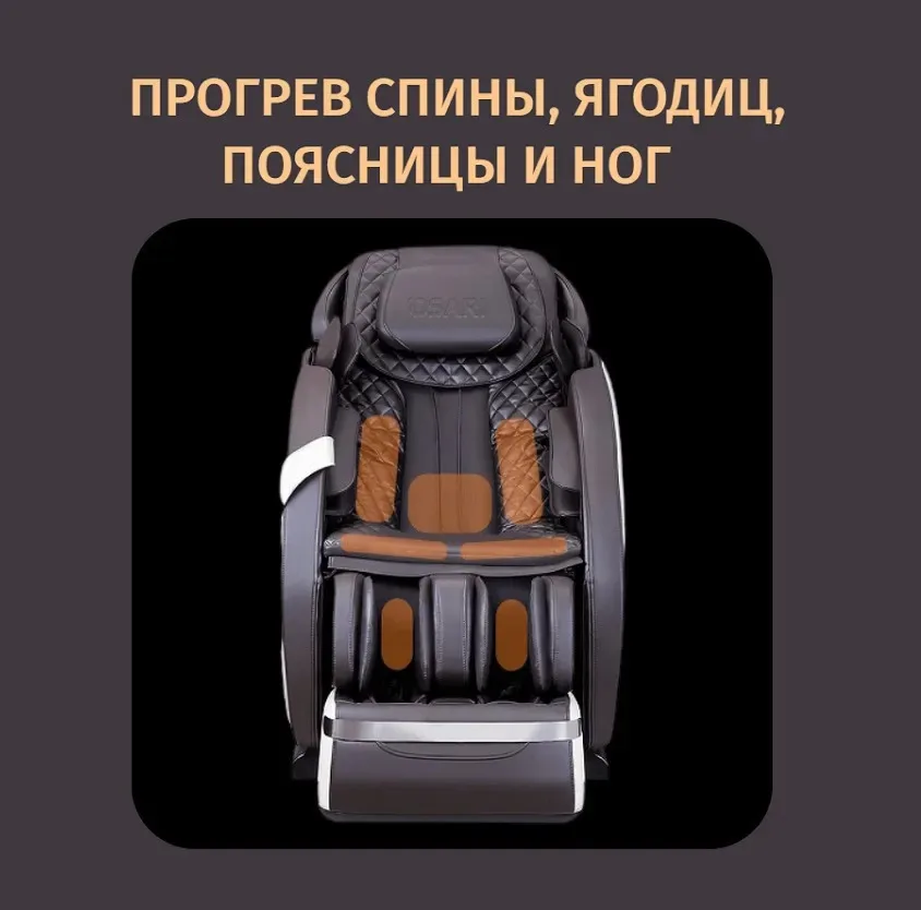 The highest massage carriage in Russia, SL 145 cm, provides deep massage of the body from the top of the neck to the buttocks and thighs. The 4D massage roller mechanism moves across the entire body, working on the neck, shoulders, back, waist, buttocks, and thighs.
