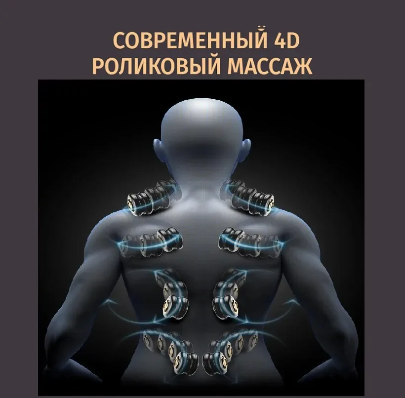 The 4D massage system means that the massage rollers move in four planes: up and down, right and left, changing the angle of impact and working on the deep muscles. This is the most advanced massage mechanism technology available today.